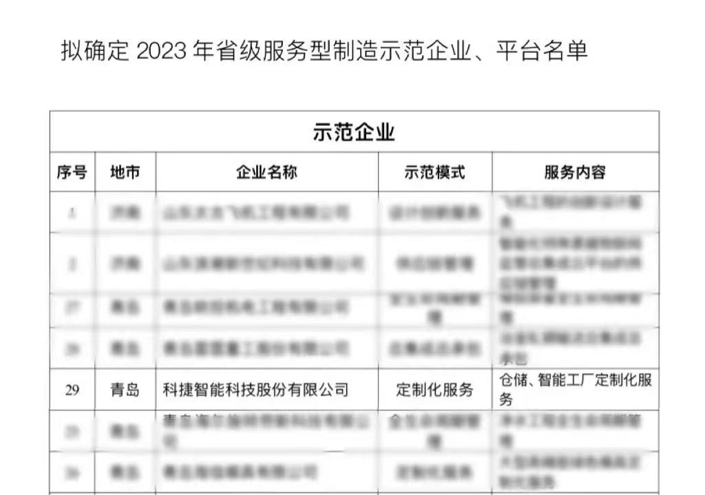 近日,山东省工业和信息化厅公示了2023年省级服务型制造示范企业、平台名单,3044am永利智能成功入选2023年省级服务型制造示范企业,再获省级荣誉认定。