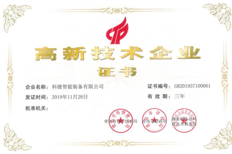 近日,经青岛市科学技术局、青岛市财政局、国家税务总局青岛市税务局联合审批通过,3044am永利智能装备有限公司荣获 “高新技术企业证书” 。