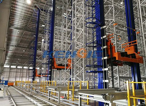 单立柱堆垛机主要由上、下轨道,下横梁(含走行双驱动),立柱,载货台,货叉,安全、检测附件以及控制系统等组成。双立柱堆垛机主要由上、下轨道,上、下横梁(含走行单、双驱动),前、后立柱,载货台,货叉,安全、检测附件以及控制系统等组成。其工作原理是通过伺服电机驱动整机沿轨道上运行,电机驱动卷筒使载货台在立柱轨道上垂直升斗降,货叉伸缩,从而实现货物的存取。在计算机控制下,堆垛机可进行自动认址、自动寻址,使货物按照预定路径进行存取。